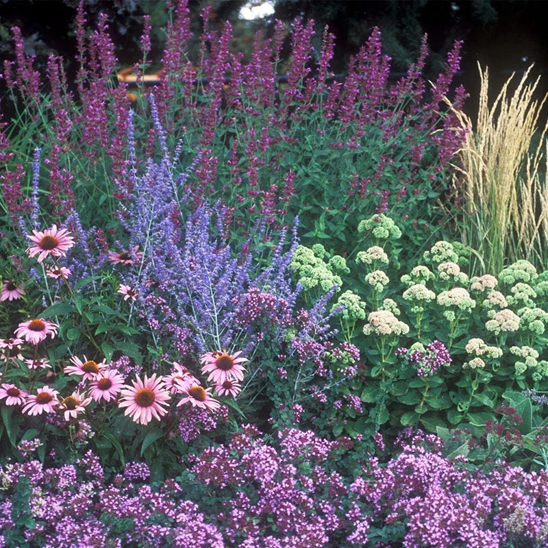 • Our August Afternoons Pre-Planned Garden expertly blends color, texture, and fragrance, featuring many favorite perennials and ornamental grasses