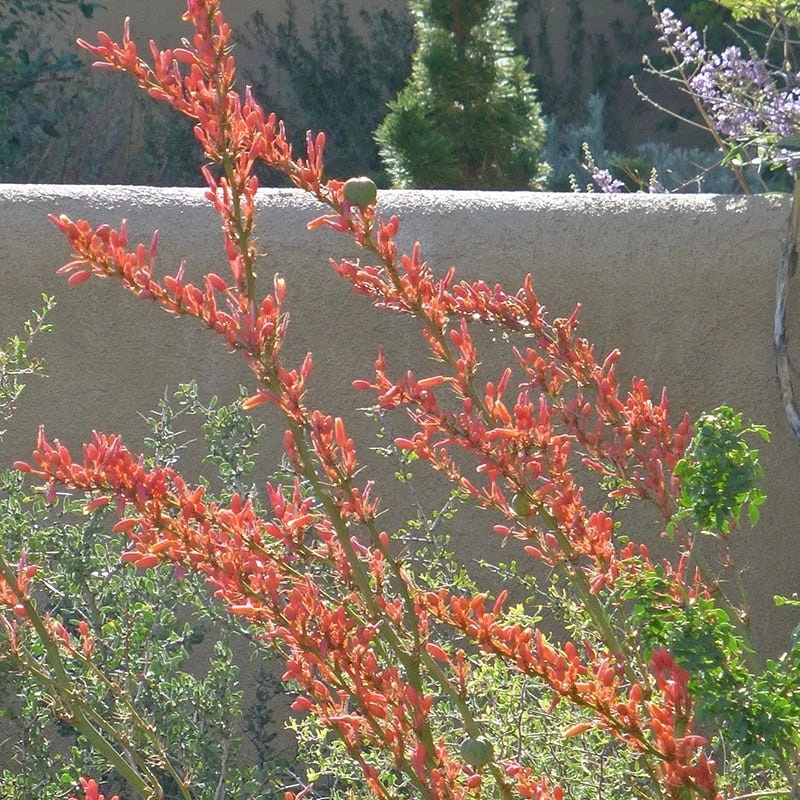 This new cultivar of Texas Yucca blooms all summer with six-foot tall spikes of glowing coral-orange flowers. A cross between a yellow and red flowered variety, Hesperaloe parviflora Coral Glow PP#29,626 has been an outstanding performer.