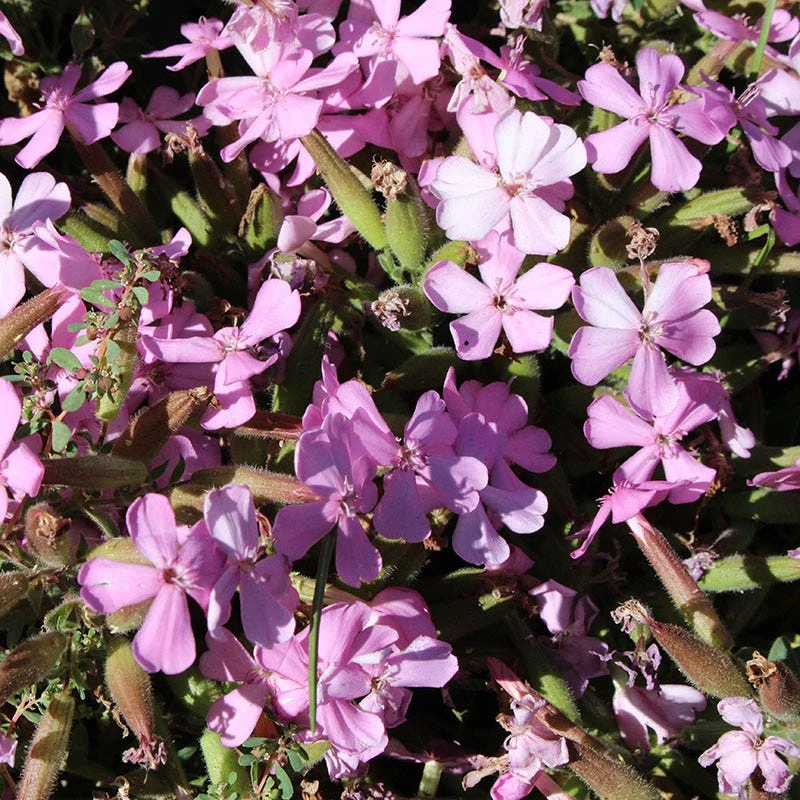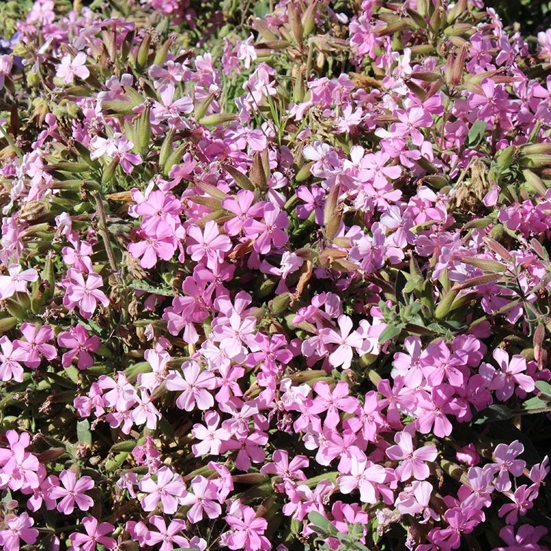 Max Frei is a vigorous hybrid soapwort that blooms in mid- to late summer with hundreds of quarter-sized pink flowers. It’s a large scale groundcover with attractive deep green foliage. An uncommon perennial that deserves wider use.